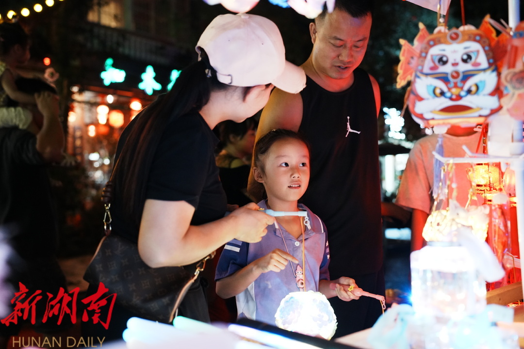 值得一提的是,集市还设置了侗语墙、诗词长廊等网红打卡点,配合星串灯光,氛围感满满,给年轻人和小朋友带来互动的乐趣。居民马女士特地带着父母来逛集市,她告诉记者,自己从小在附近长大,之前沿河街上除了芷江夜景什么都没有,没法吸引年轻人。“这次过来发现新开了不少好玩的店,还有彩灯和集市,很新鲜,以后可以经常过来逛逛。”马女士说。