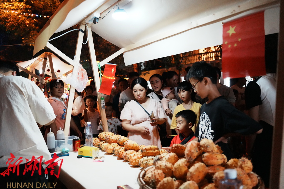湖南日报·新湖南客户端9月30日讯(记者 杨超 通讯员 吴俊 黄建建)闪烁的霓虹灯下人群熙攘,魅力侗城里一派热火朝天的景象。9月30日晚,芷江“沅州云集”·侗族特色市集正式开市,共设近百个特色摊位,文艺表演、特色小吃、文创产品等一应俱全,为广大游客带来一场好看好玩好吃的盛宴。据悉,此次集市持续8天,每日18:30到22:30营业。