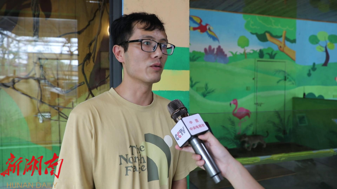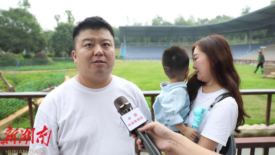 今天我们是从长沙过来的,一家三口。带我儿子、老婆一起过来看一下,然后今天感觉也特别好,小动物很可爱。主要是培养孩子的爱心和耐心,对大自然的热爱。”