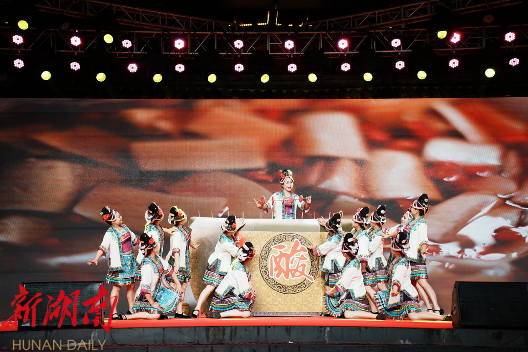 民族节庆活动不仅是引领少数民族传统文化传承与发展重要载体,更将成为旅游品牌开发和经济社会发展的“助推器”。由5个鼓楼组合而成的万和鼓楼,配合灯光的点缀,精美的建筑艺术展现得淋漓尽致。广场前,侗族舞蹈《侗不离酸》,通过演员们细腻的表演,展示了侗家人爱吃酸的韵味和要把侗家酸食打造成振兴乡村产业的决心,生动还原了芷江独特的民俗文化繁荣景象。