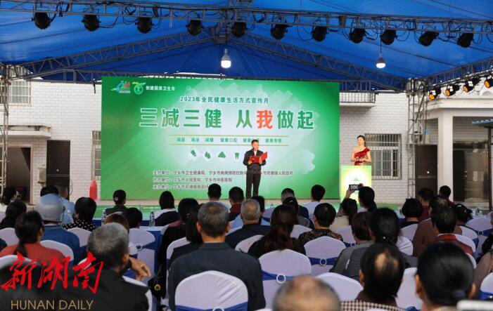湖南日报·新湖南客户端讯通讯员 朱峰林 文思彤 2023年9月是第17个“全民健康生活方式宣传月”,今年的宣传主题为“三减三健,从我做起”。为进一步贯彻党的二十大精神,落实《健康中国行动(2019--2030年)》及《全民健康生活方式行动方案(2017--2025年)》有关要求,倡导公众践行文明健康的生活方式,9月27日,宁乡市卫健局、市疾控中心、坝塘镇人民政府联合市人民医院、市中医医院在坝塘镇南田坪卫生院内举办宁乡市2023年“全民健康生活方式宣传月”大型主题宣传活动。