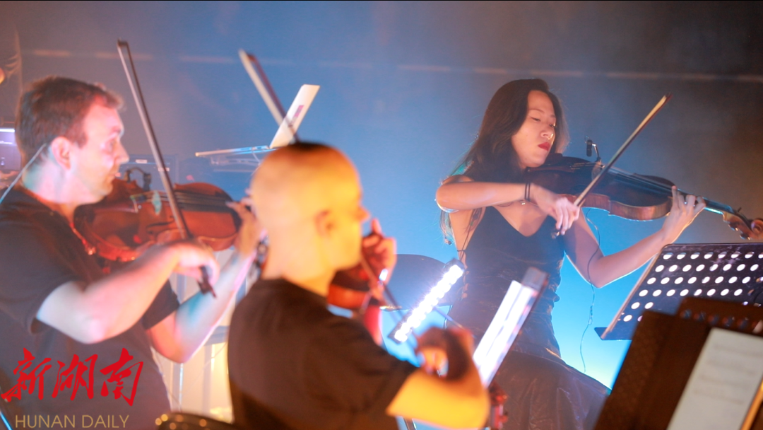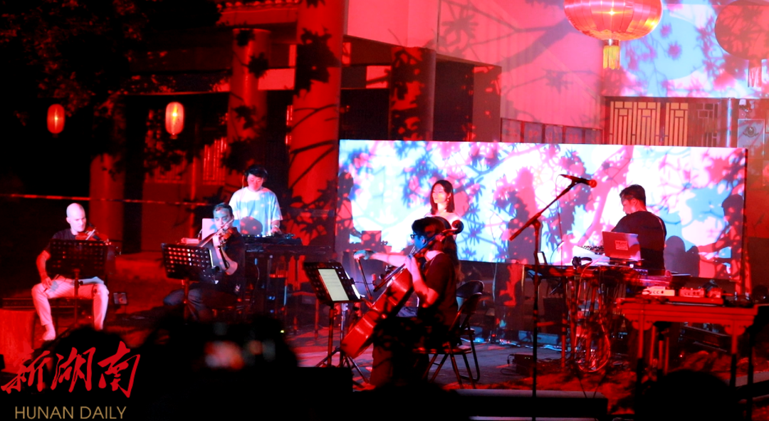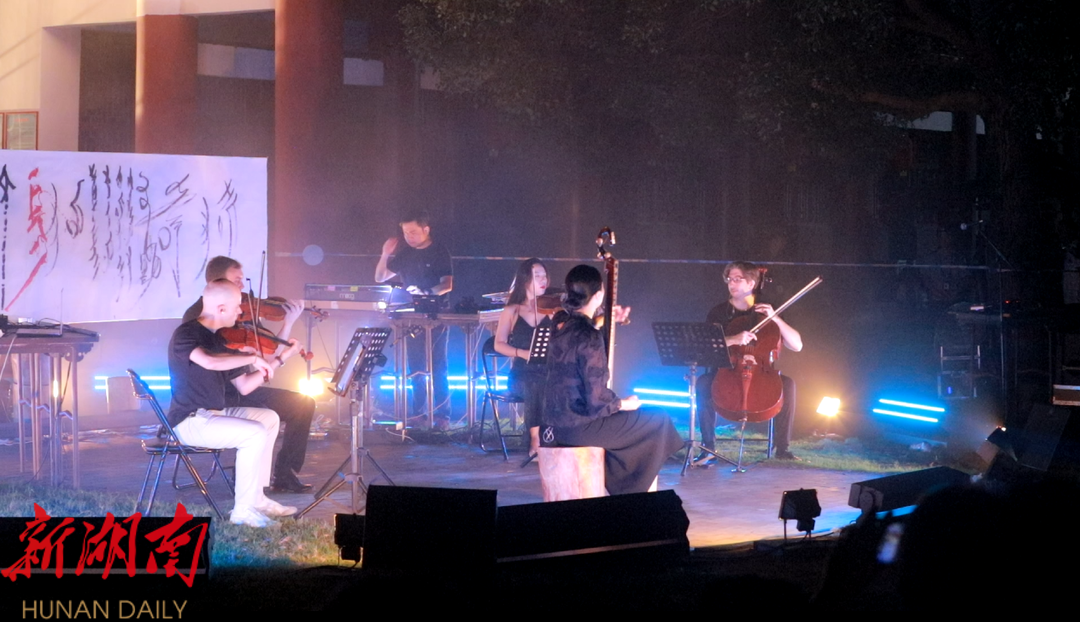 中秋之夜,月光皎洁,在江永县女书园,巴德弦乐四重奏、中国唢呐博士刘雯雯、笙演奏家张梦和著名电子音乐人LJ等共同合作,为现场观众献上了一场热烈明快、激情迸发的视听盛宴,生动展示了最古老的女书文化与最前卫的电音音乐的有力碰撞。《女书幻想》一曲更是将传统的民歌曲调揉于当代风格的摇滚音乐之中,在炫彩夺目的灯光下,音乐声时而慷慨激昂,时而柔情婉转,让观众尽情感受传统与现代的融合魅力。音乐会最后还邀请观众一同狂欢跳舞,共庆中秋佳节,气氛达到了高潮。