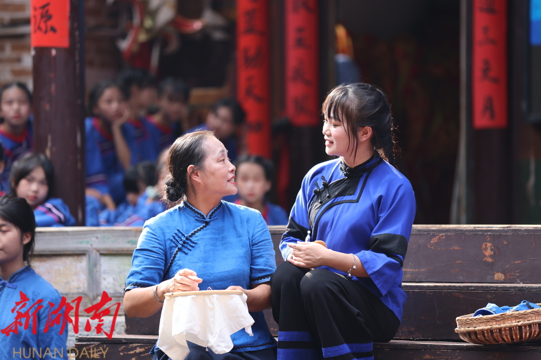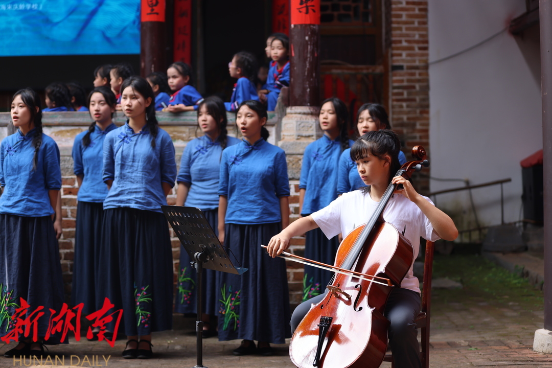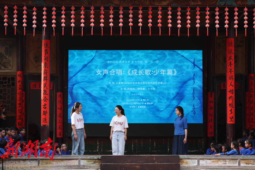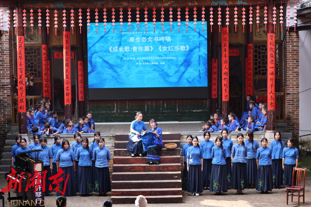 演出现场,江永学子演唱了由研学团内华东师范大学音乐学院师生结合江永女书文化背景、传承特点等多方面创作而成的《猜谜语》《成长歌:少年篇》《四字女经》《成长歌:青年篇》《女红乐歌》《节气歌》六首歌曲,曲调朗朗上口,在保留女书本味的基础上,也展现出对音乐的艺术追求,让女书能够更好地传下去、活起来。