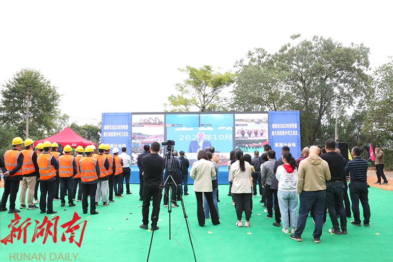10 月7日,衡阳市2023年四季度重大项目集中开(竣)工仪式举行,区委书记曾梦龙在蒸湘分会场通过视频连线方式向全市主会场报告蒸湘重大项目集中开(竣)工情况。区委副书记、区长李健,区委副书记、统战部部长贺畅,区人大常委会主任彭东阳,区政协主席陈硕果出席。
