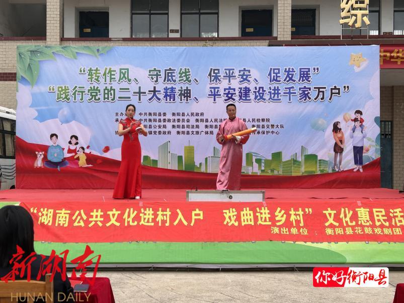 10 月8日上午,衡阳县“转作风、守底线、保平安、促发展”暨“践行党的二十大精神、平安建设进千家万户”主题宣传活动文艺巡演在金溪镇中心小学举行。