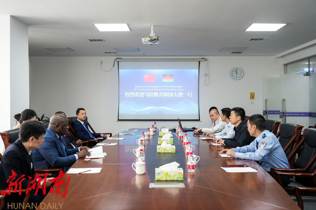 10月10日上午,马拉维共和国驻华大使艾伦·钦泰扎一行来访株洲汽车博览园,与株洲高科汽车园经营管理有限公司洽谈二手车出口业务。市委副秘书长、市委外事办主任王伟胜,市商务局党组成员、副局长何好俊,市交警相关负责人参加座谈。