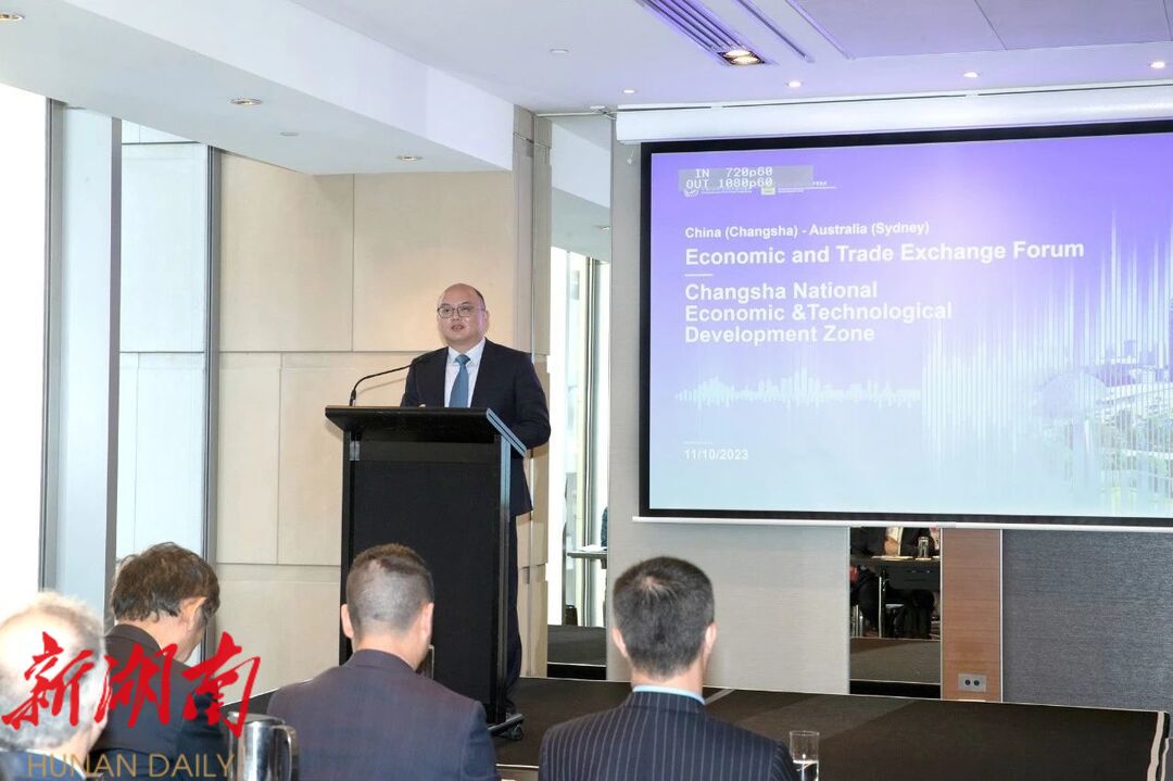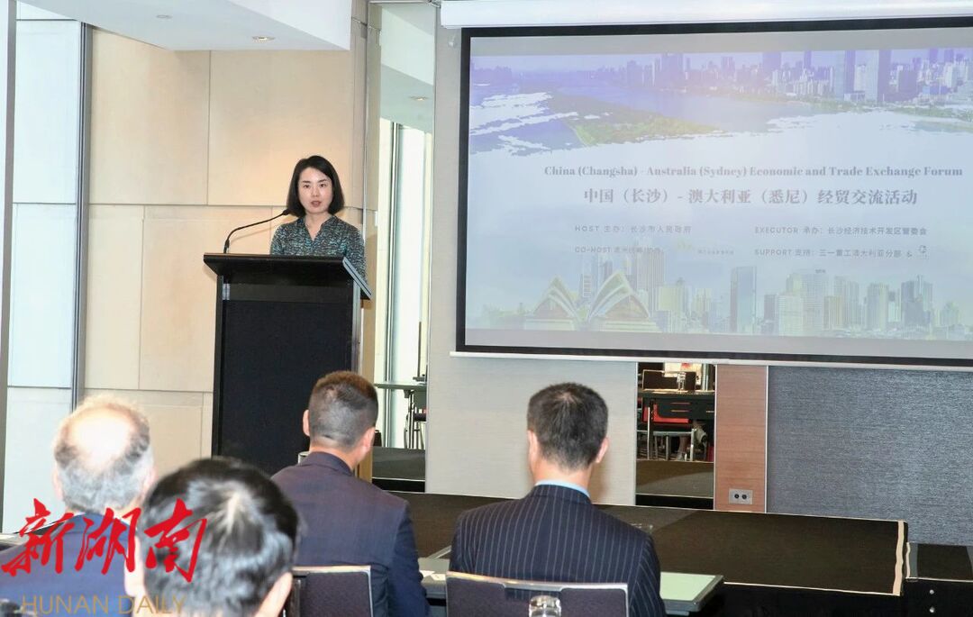 湖南日报·新湖南客户端10月12日讯(长沙经开区工作站记者 胡欢欢 通讯员 袁鸣 齐迎美 ) 10月11日下午,中国(长沙)-澳大利亚(悉尼)经贸交流活动在澳大利亚悉尼希尔顿酒店举行,活动由长沙市人民政府主办,长沙经济技术开发区管委会承办。中国驻悉尼总领事馆代总领事王春生出席活动,长沙市人民政府副市长高文棋、澳大利亚贸易投资委员会国际业务经理尤湘萍等出席活动并致辞,长沙经济技术开发区党工委副书记赵文骄作长沙经开区投资及人才引进推介。澳洲首位华人议员、博士何沈慧霞、悉尼科技大学副校长张成奇、澳华科技协会主席孙君泓以及澳大利亚中国工商业委员会、中国国际贸促会澳洲分会、中新社澳洲分社、澳大利亚商会联盟、澳中商业峰会、澳大利亚湖南商会、澳中企业家俱乐部及澳洲企业等代表共约80人参加活动。