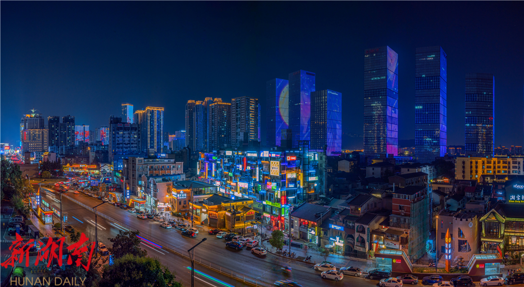 夜色下的开福流光溢彩。(潮宗街历史文化街区供图)