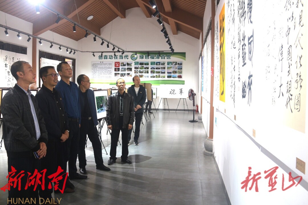 ▲10月11日下午,蓝山县委编办党支部结合“一月一课一片一实践”主题党日活动,组织全体党员到县植物园科普馆参观由县委宣传部、县委政法委、县总工会、县文联和三蓝集团联合主办的蓝山县“贯彻党的二十大 喜看蓝山新巨变”三蓝杯书法美术摄影展。(通讯员 雷云)