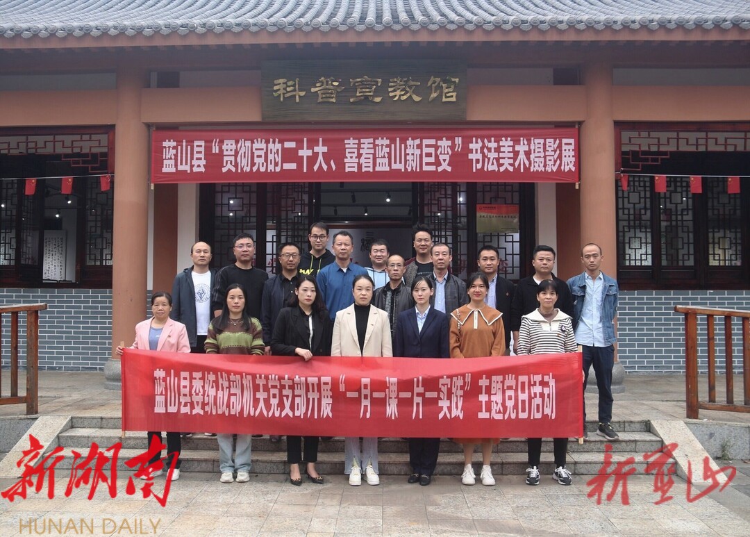 ▲10月12日,蓝山县委统战部组织机关全体党员、干部到县植物园科普馆开展“一月一课一片一实践”主题党日活动,参观蓝山县“贯彻党的二十大 喜看蓝山新巨变”书法美术摄影展。(通讯员 魏阳 黄海晶)