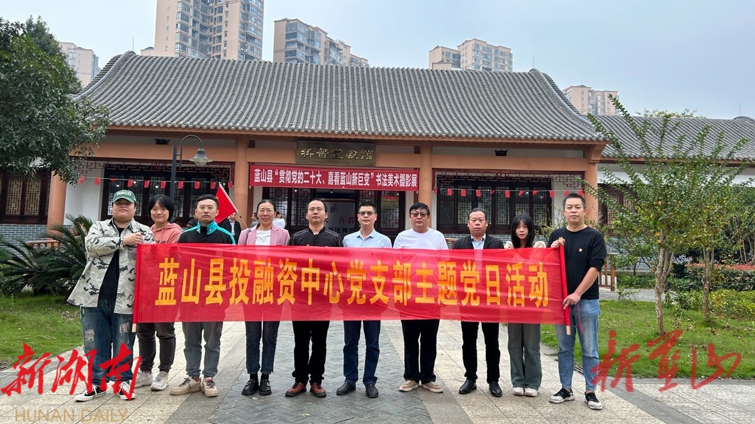 ▲10月13日,蓝山县城投公司党支部党员齐聚县植物园科普馆,参观蓝山县“贯彻党的二十大 喜看蓝山新巨变”书法美术摄影展。此次展览精选了170件杰出作品。(通讯员 徐雨涵)