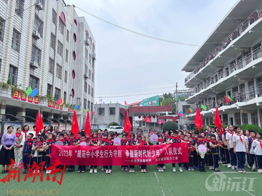 新沅江客户端10月16日讯 (通讯员 赵韵婉)10月13日是中国少年先锋队建队74周年纪念日,为增强学校少先队组织力量,发展中国少年先锋队队员,沅江市莲花塘学校隆重举行了“规范中小学生行为守则 争做新时代好少年”少先队建队日暨新队员入队仪式。