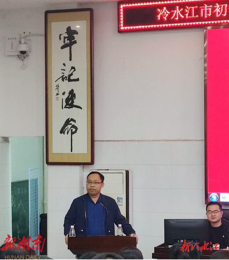 工作室主持人蔡启良作表态发言。他表示,将与各位老师砥砺前行,并肩战斗,让冷水江物理化学两棵教育之树,在学科工作室结出累累硕果。