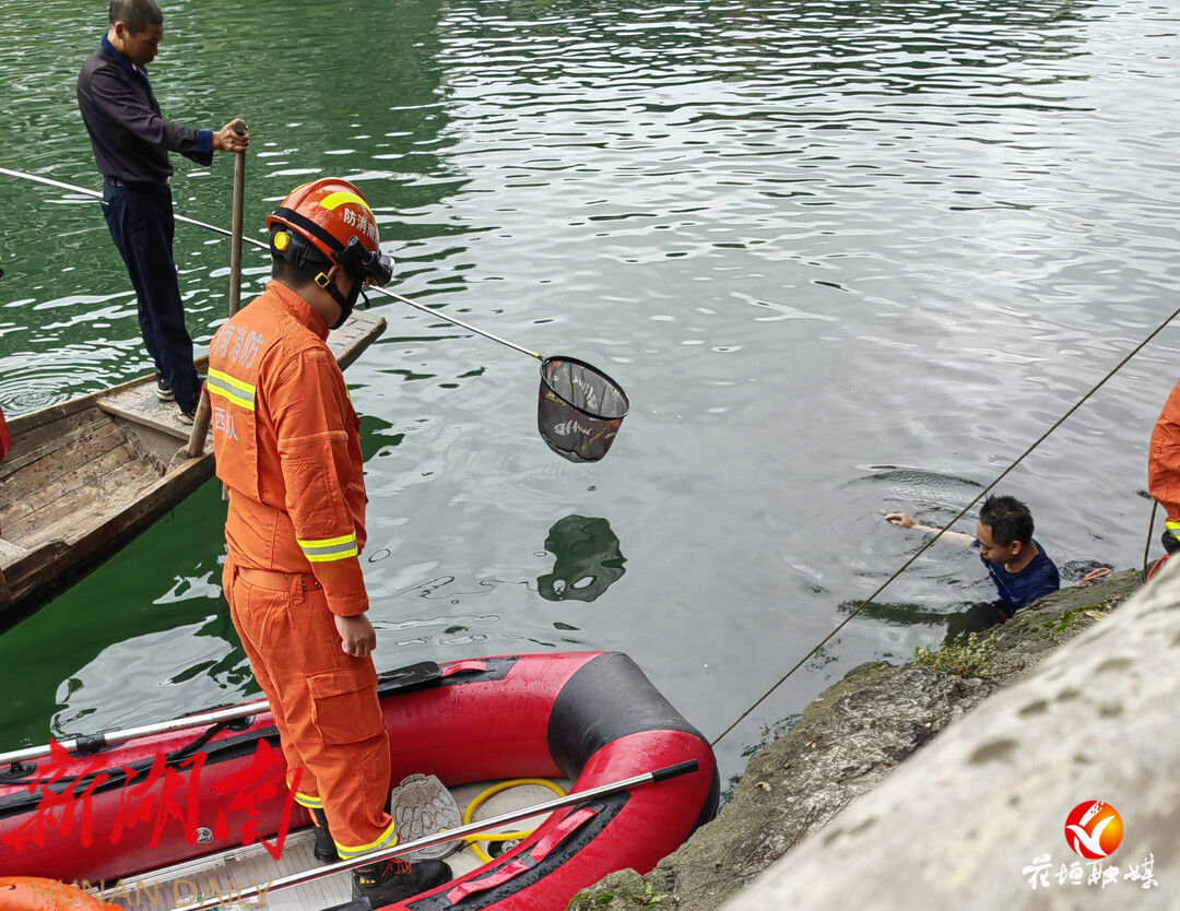 10月2日上午9时许,倪先生在花垣县边城茶峒古镇游玩,行至边城景区用无人机拍摄风景时,因操作不当,不慎将价值近万元的无人机挂落在景区河边的树枝上,随后又被风吹掉落进河里。由于河水较深,倪先生无法自己寻找,于是便向花垣县消防救援大队求助,接到报警后,花垣县消防救援大队立即调派边城镇政府专职消防救援站正在景区执勤点执勤的消防人员前往现场处置。打捞期间,因河水冰冷,倪先生担心消防人员受凉感冒,曾多次提议放弃打捞。历时一个多小时,边城镇政府专职消防救援站的队员们 成功帮游客找到无人机,受到游客点赞。