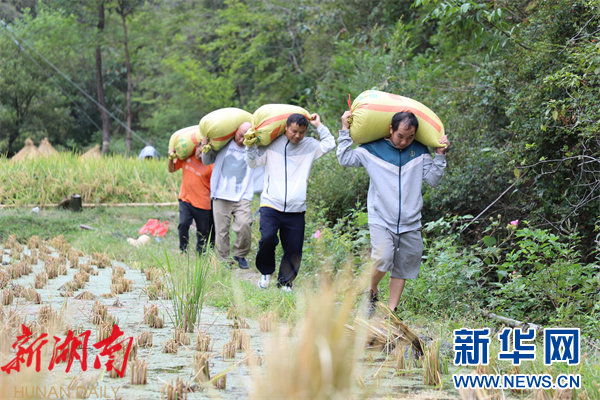 贵州台江:稻谷收割季 处处丰收景。(张强 摄)