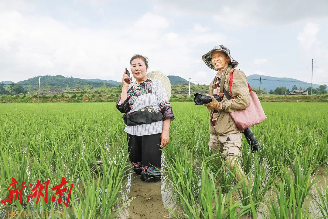 田金珍在稻田里拍摄短视频宣传推广村里的大米