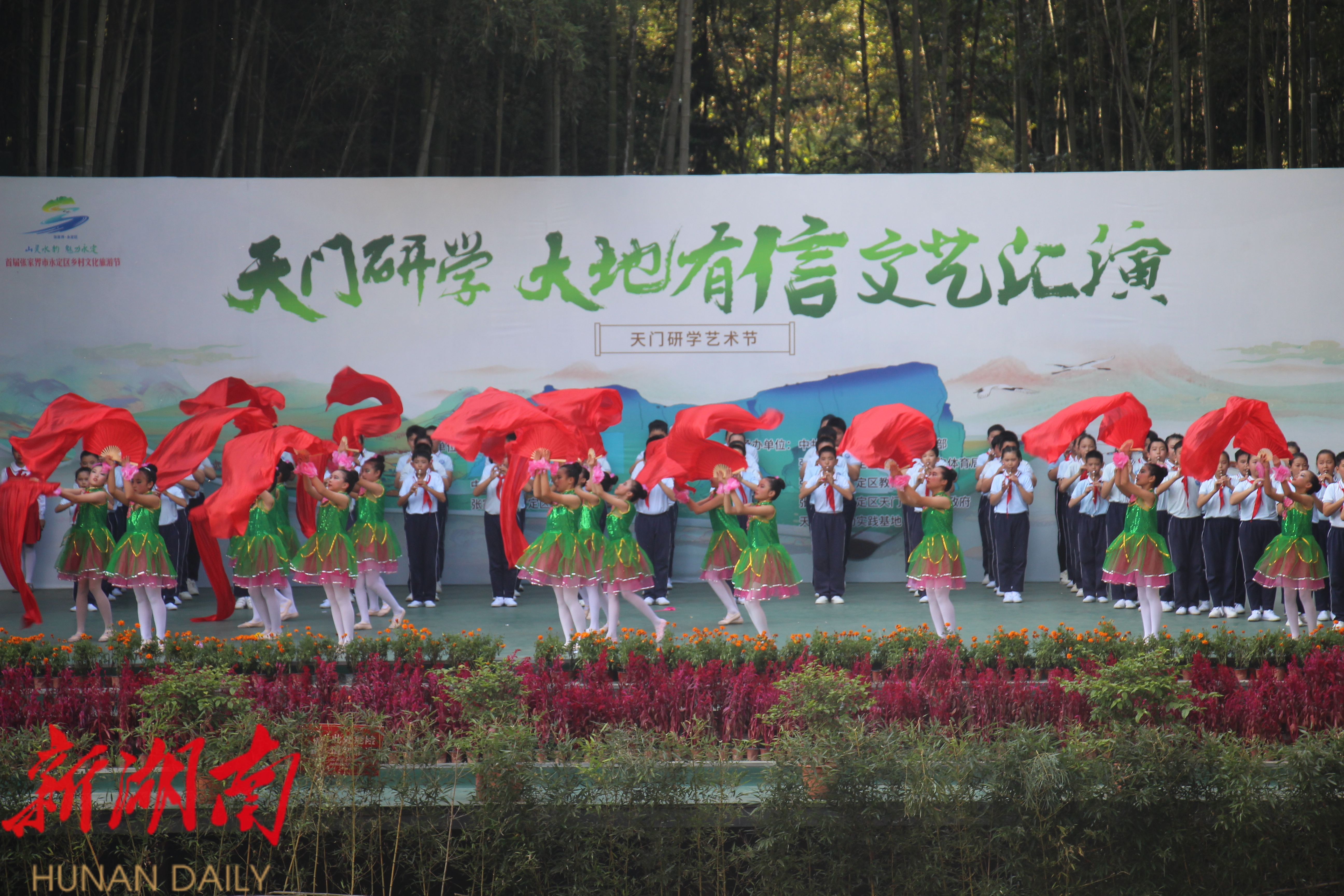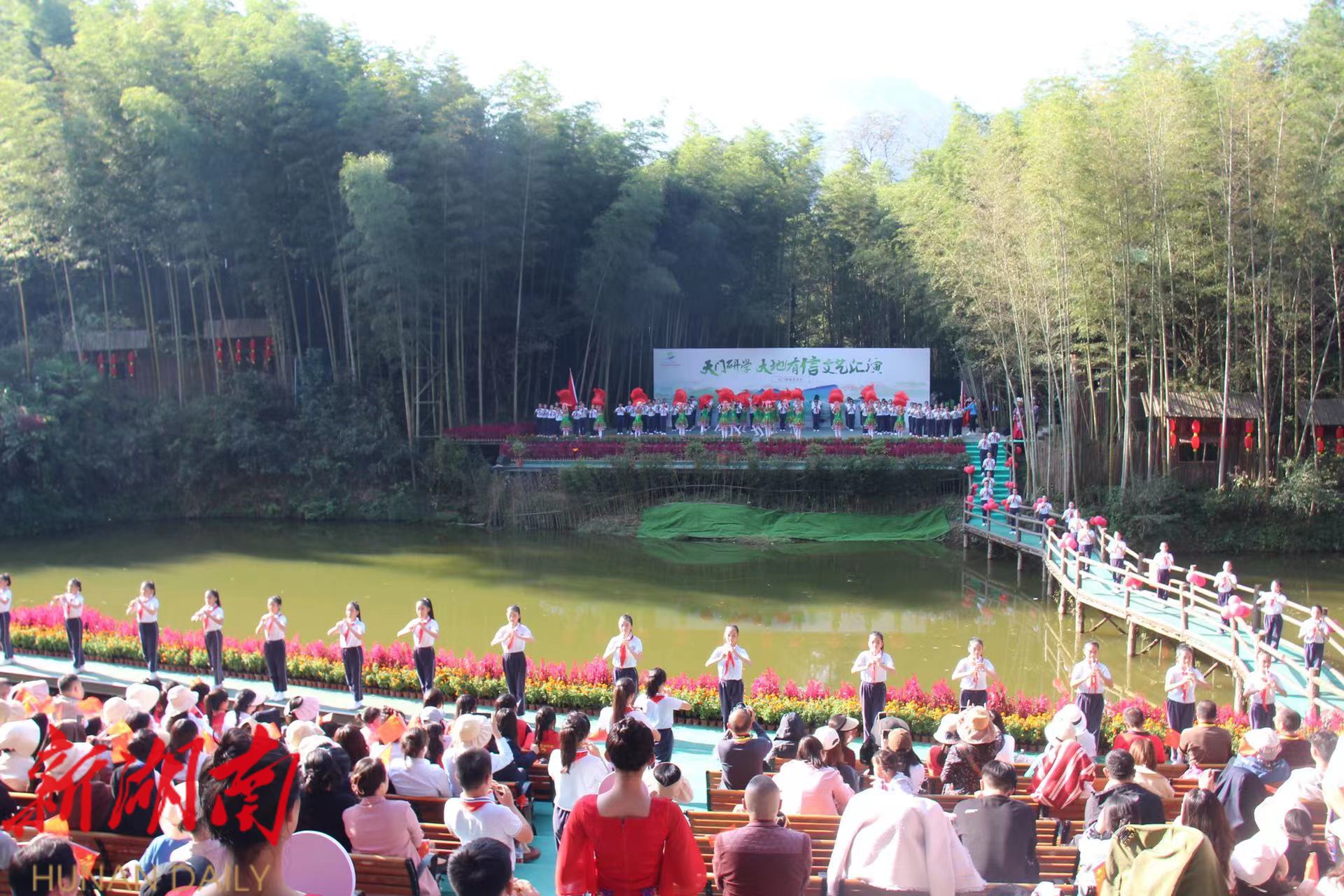 湖南日报·新湖南客户端10月15日讯(通讯员 明鑫) 10月14日下午,以“天门研学 大地有信”为主题的张家界天门研学艺术节活动在永定区天门溪劳动实践基地拉开帷幕,张家界崇实小学北校两百多名师生参加此次活动。