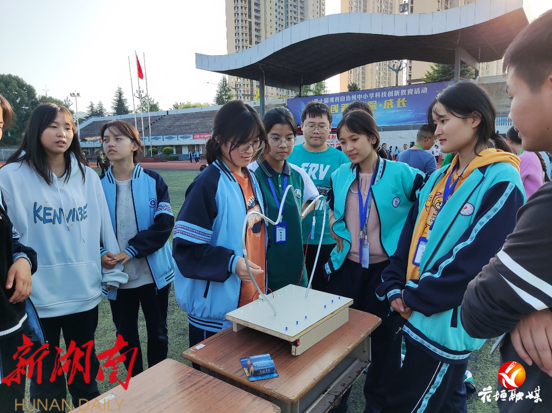 活动现场还设置有电磁迷宫、吹硬币、筷子提米等6个科学小游戏,学生们纷纷排起长队,参与其中,争相感受科学游戏带来的奇特体验。“今天我很开心,因为我看到了很多飞机,还玩了很多游戏而且得了奖品。我们以后要好好学习,天天向上,为国家制作科技作品。”永顺县实验学校六年级学生覃奋飞扬在齐集全部趣味游戏奖章后激动地说。