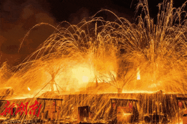 看“非遗”打铁花表演。千年“非遗”打铁花,万点星辰的铁花焰火,浪漫的你一定不能错过。