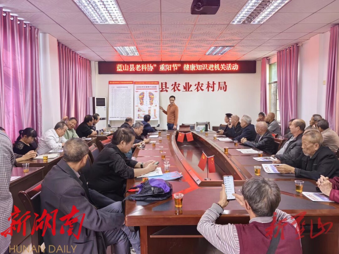 湖南日报•新湖南客户端10月19日讯 (通讯员 宁志球)在一年一度的传统佳节—-重阳节来临之际,10月18日上午,蓝山县老科协健康科普人员为老同志们举办以足部按摩保健治疗为主题的健康知识讲座。