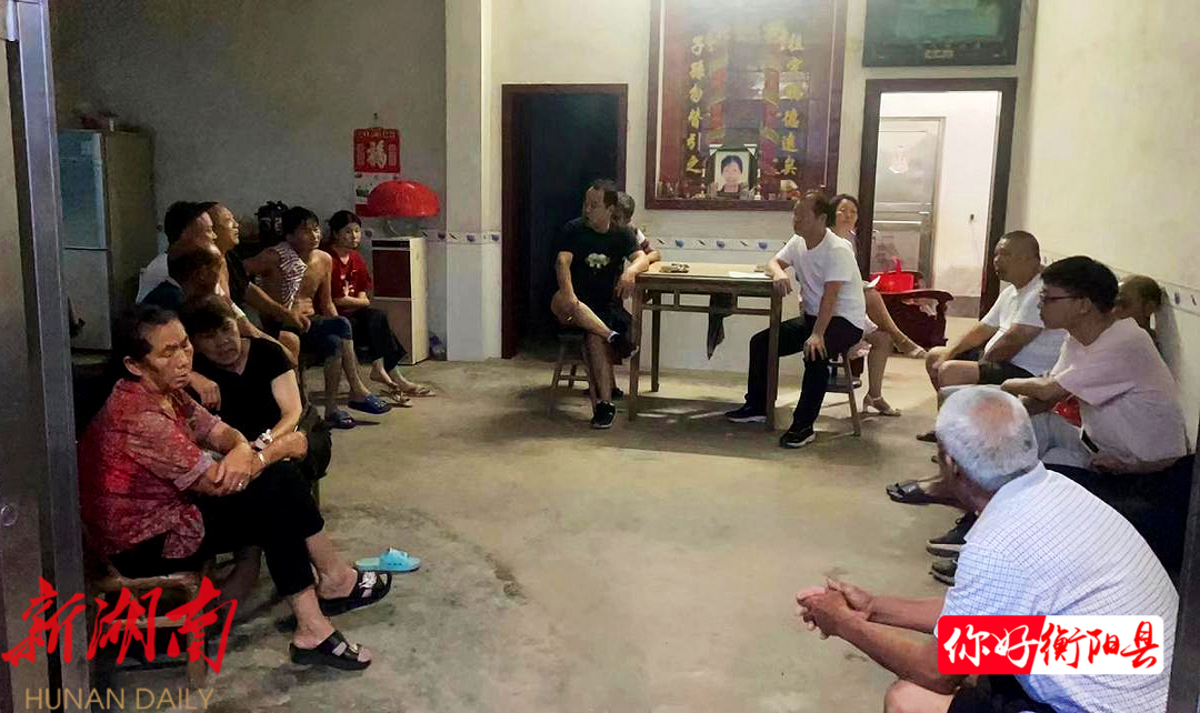 图:岣嵝乡神皇村党支部书记董端祥到组里召开屋场恳谈会