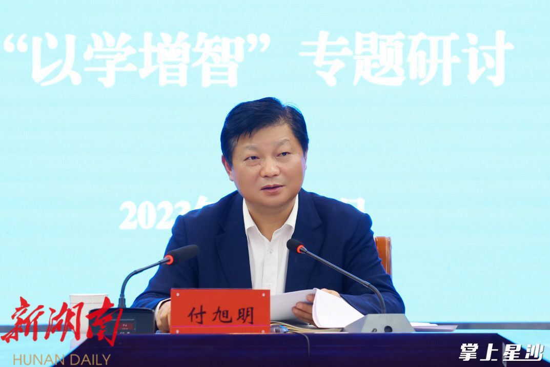 付旭明强调,要提升实践能力,练就出干事创业、攻坚克难的“硬本领”。坚持以学增智,就是要发扬理论联系实际的优良作风,全面把握习近平新时代中国特色社会主义思想一系列新理念新思想新战略的实践要求,切实提高推动高质量发展、服务群众、防范化解风险的本领。要增强推动高质量发展的本领,深入学习领会、全面贯彻习近平经济思想,不断完善“1345”发展思路,持续深入开展“四个年”行动,加快推进构建现代化产业体系和城乡区域协调发展体系,努力在推动县区高质量发展上闯出新路子。要增强促进人民幸福的本领,始终站稳人民立场、走好群众路线,在推进建设教育强县、文体强县,打造健康星沙、美丽星沙、平安星沙、幸福星沙等方面多思创新之策、多行务实之举,持之以恒推进建设共同富裕先行区,不断增强广大群众的获得感、幸福感、安全感。要增强防范化解风险的本领,树牢底线思维、发扬斗争精神,有效防范化解政治安全、意识形态、社会治理、安全生产、生态环保、政府债务、经济发展等领域存在的风险和隐患,牢牢守住不发生系统性风险的底线。同时,要扎实推进清廉星沙建设,营造风清气正的政治生态和发展环境。