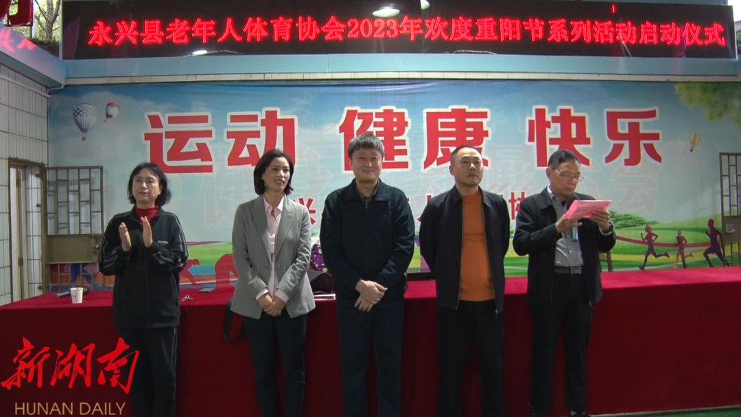 湖南日报·新湖南客户端10月20日讯(记者 李华)为迎接重阳节的到来,推动全民健身发展,活跃老年人文体生活,10月20日,永兴县卫健局、全民健身服务中心、老年人体育协会联合举办重阳节老年人系列活动。