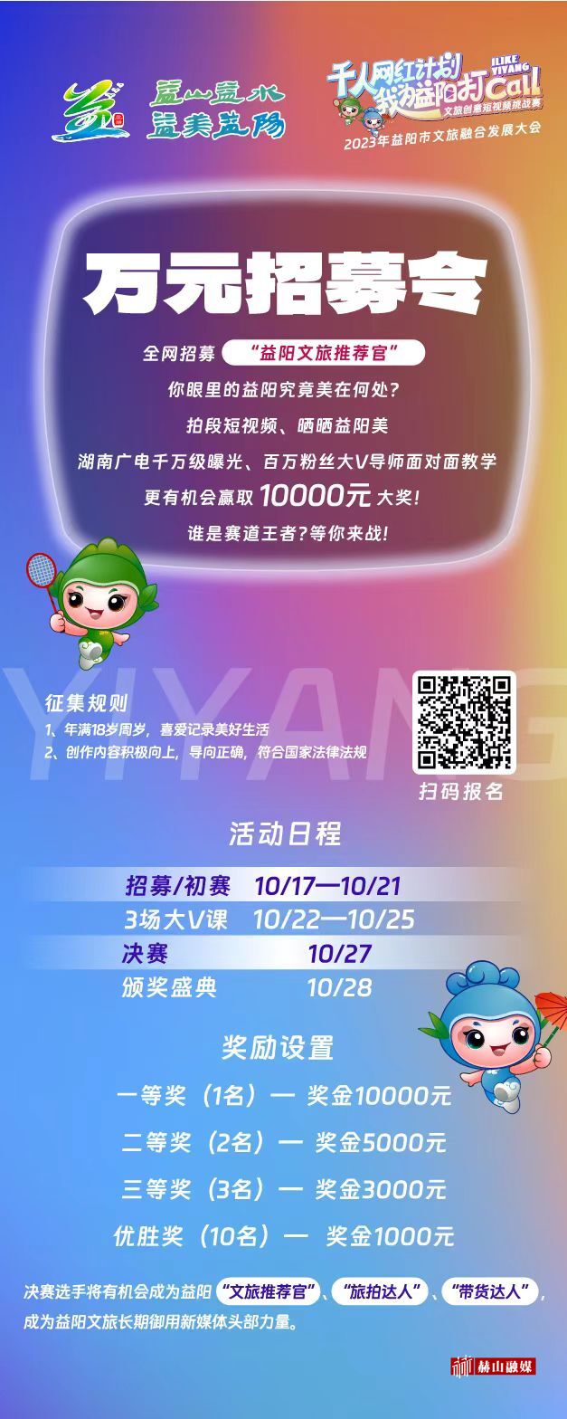 “千人网红计划”——“我为益阳打call”文旅创意短视频挑战赛正式启动,“益山益水,益美益阳”等你来拍!