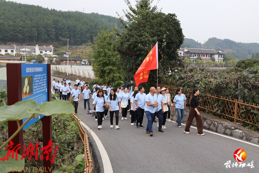 在凤凰县菖蒲塘村,大家沿着习近平总书记的考察足迹,行进在蜜柚产业道间,两侧的蜜柚在秋日中展示着诱人的青黄,空气里散发着香甜的味道,目光所至皆是产业振兴的火热实践。大家随后观看了红色宣传片《幸福是奋斗出来的》,参观了乡村振兴展览馆,了解菖蒲塘村水果立村、农旅融合、产业兴村的致富之路。