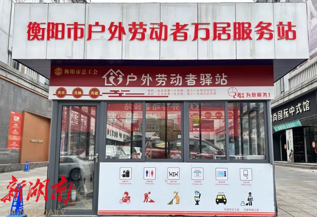 衡阳市户外劳动者万居服务站由万居工会与石鼓区总工会共建。站点连接万居国际家居广场、华源大市场、中湘五金机电三大市场。 三大市场日均人流量近2万余人,临街门面多,户外劳动者多。 站点主要服务对象为环卫工人、货运司机、搬运工、快递员、送餐员、绿化工人、市政工人、交通协警等。