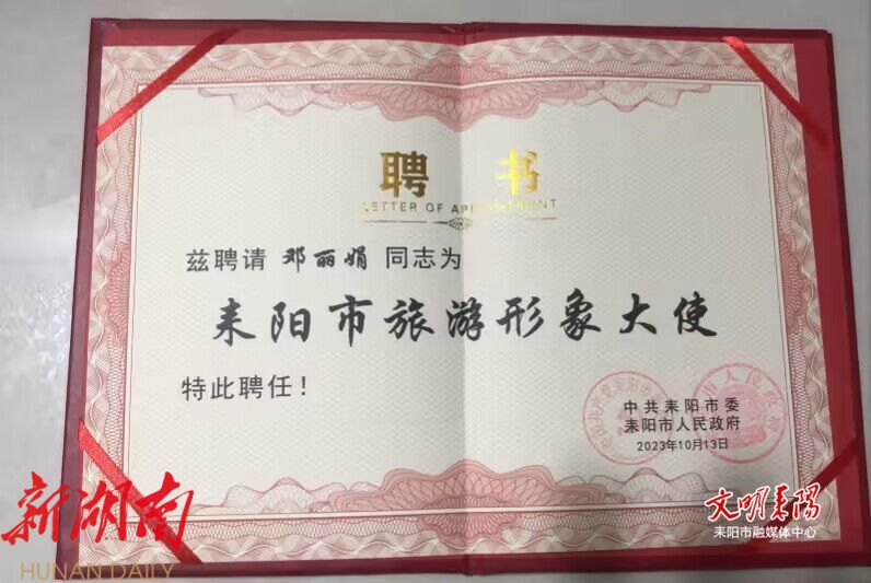 亚运冠军邓丽娟成为耒阳市旅游形象大使