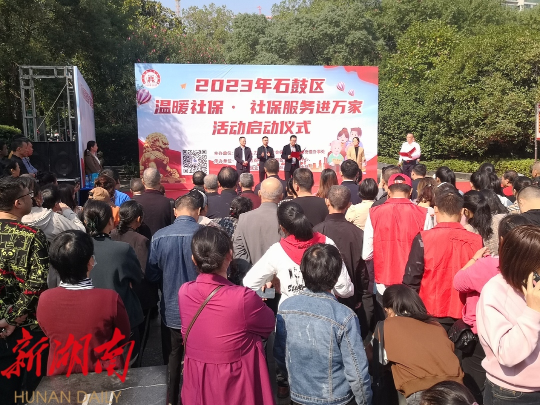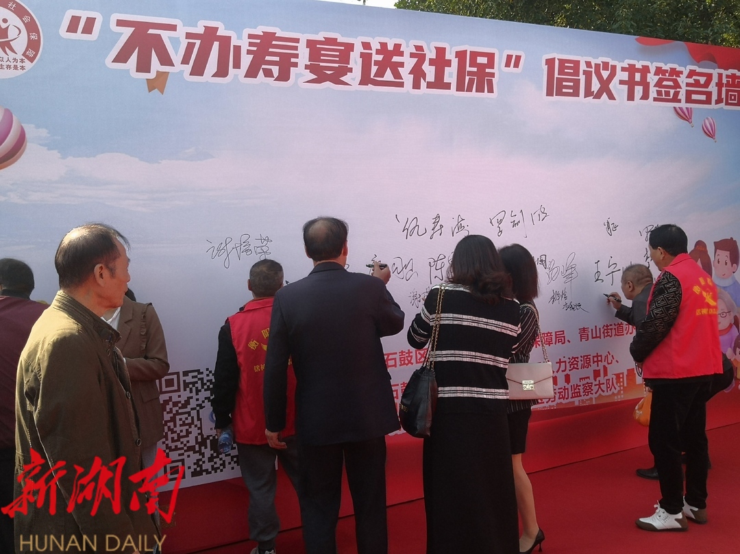 区委常委、常务副区长带头在“不办寿宴送社保”倡议书上签字、区人社局局长手把手指导市民安装“智慧人社”APP、工作人员“线上+线下”宣传解读社保政策……今日上午,石鼓区“温暖社保·社保服务进万家”活动在莲湖广场暖心启动。