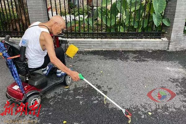 直至现在,只要到保养厂宿舍附近转悠转悠,都能看到这辆挂着垃圾袋,载着垃圾桶的助力车在路上“巡逻”。车上的老人,起身又坐下,轮换着用扫帚和铁夹,维护着小区整洁的环境。