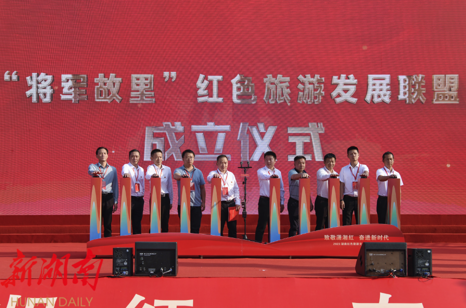 “将军故里”红色旅游发展联盟在开幕式上正式成立, 湖南平江县、湖北红安县、江西兴国县、安徽金寨县、江西永新县、湖南浏阳市、湖南茶陵县、湖南长沙县、湖南湘乡市、湖南湘潭县10个开国将军县成为联盟的首批成员,平江县现场向各联盟成员发出“共树形象、共建机制、共谋发展、共享成果”的倡议,呼吁全国红色文旅城市凝聚力量,携手同行,共创红色文旅发展的美好未来。