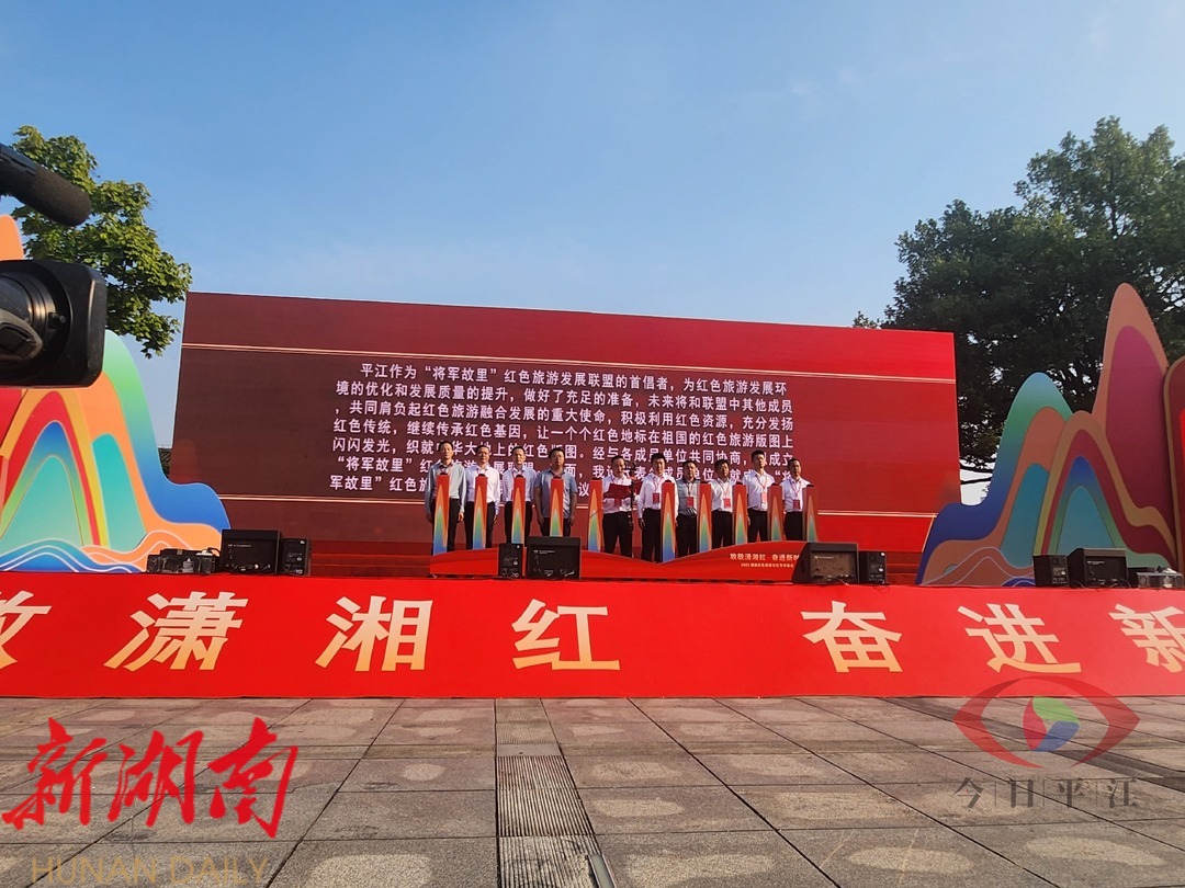 “将军故里”红色旅游发展联盟在开幕式上正式成立,湖北红安县、江西兴国县、安徽金寨县、湖南平江县、江西永新县、湖南浏阳市、湖南茶陵县、湖南长沙县、湖南湘乡市、湖南湘潭县10个开国将军县成为联盟的首批成员,平江县现场向各联盟单位发出“共树形象、共建机制、共谋发展、共享成果”的倡议,呼吁全国红色文旅城市凝聚力量,携手同行,共创红色文旅发展的美好未来。