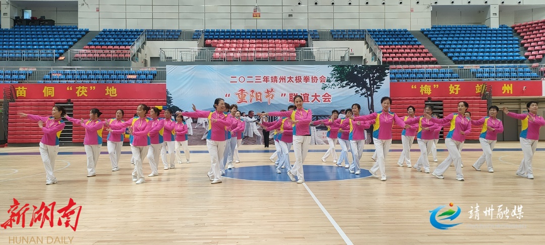 靖州融媒10月23日讯 (记者 龙俊霓)10月22日,靖州苗族侗族自治县太极拳协会在民族体育馆开展迎重阳强身健体活动。14支代表队,300余名太极拳爱好者齐聚一堂,以武会友,上演了一场精彩纷呈的太极盛会。
