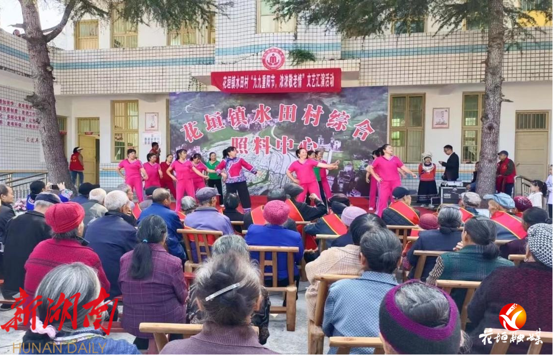 10月21日,花垣镇水田村开展了“九九重阳节,浓浓敬老情”主题庆祝活动,邀请村里老人相聚在幸福之家看演出、吃敬老饭,共庆重阳佳节。