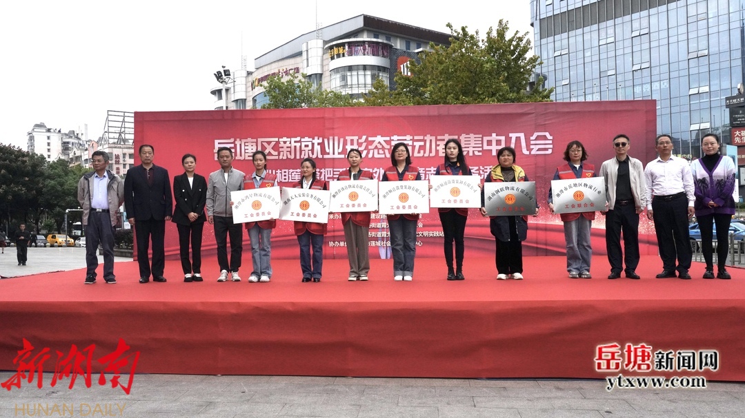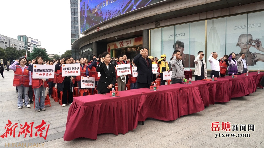 岳塘新闻网10月20日讯 (记者 郭奕含)为加强对新业态新就业群体的关心关爱,吸引新就业形态劳动者积极加入工会组织,推进工会组织全覆盖工作。10月20日,岳塘区新就业形态劳动者集中入会暨“心相莲·搭把手”户外劳动者志愿服务主题活动在建设路口步步高广场前坪举行。湘潭市总工会党组成员、副主席罗军,岳塘区人大常委会党组成员、副主任、区总工会主席蒋新跃出席。现场100名新就业形态劳动者代表庄严宣誓,加入工会。