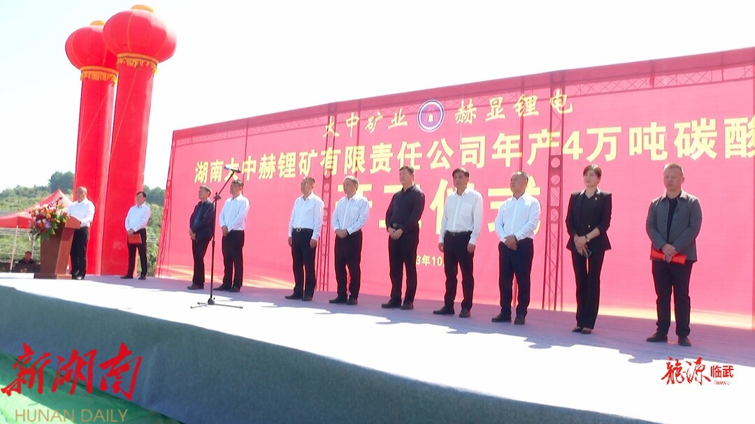 10月23日,湖南大中赫锂矿有限责任公司年产4万吨碳酸锂项目开工,市委常委、副市长马天毅出席开工仪式并宣布项目开工。