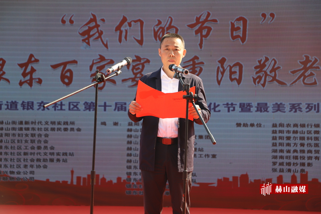 吃一次热热闹闹的“百家宴”,品一份浓浓的邻里情。10月23日重阳节,赫山街道银东社区惠民小区热闹非凡,这儿正举办我们的节日“五彩银东百家宴·重阳敬老情意浓”第十届重阳节民俗文化节暨最美系列评选活动。与社区居民一同共度佳节的,还有市直机关工委常务副书记肖谷秋,区委书记周卫星,区政协主席陈铁军,区领导陈维民、高志荣、王琛、谭正祥、雷鹏。