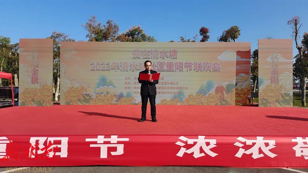 10月20日上午,由金凤街道主办,清水塘社区承办,区纪委、区农业农村局协办的“情暖金秋爱在重阳 爱在清水塘”2023年清水塘社区重阳节联欢会在沙河露营基地举行,区二级调研员刘建强出席活动并致辞。