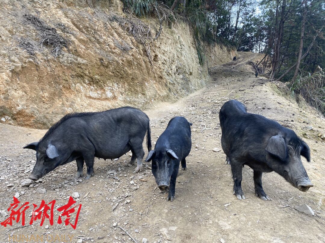李沐告诉记者,跑山猪就是不喂饲料,不关圈舍,在山坡上放养,随时都可以自由活动。而怀孕的母猪大多会在山林间生产,在山上哺育小猪,待小猪断奶后,才会带着小猪“回家”。