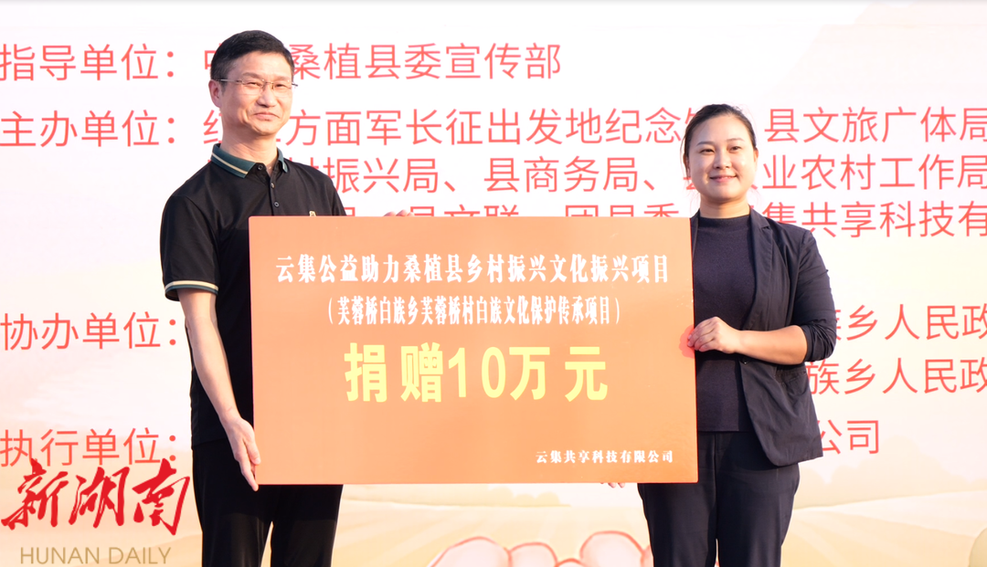 活动中,两首桑植民歌《门口挂盏灯》《马桑树儿搭灯台》让旅行团感受到独属桑植的文化魅力,《贺龙元帅74年风雨回家路》的红色故事更是让现场不少观众为之动容。现场,云集电商为桑植县乡村振兴文化振兴项目捐赠10万元,还现场订购签约5万元桑植白茶、授牌百年育英为云集红色研学基地。