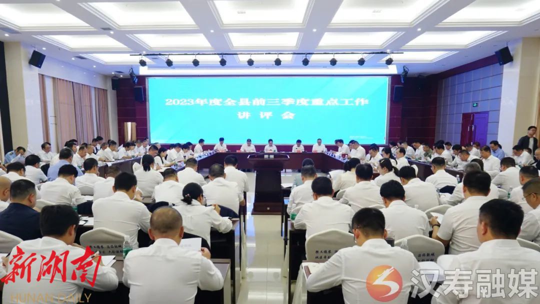 10月24日,汉寿县召开2023年前三季度重点工作讲评会,县委书记周功表出席会议并讲话,县委副书记、县长王时雨
