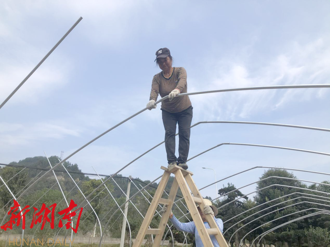 湖南日报·新湖南客户端10月25日讯(通讯员 叶秀月) 秋高气爽,在永定区教字垭镇阳光村、兴隆村的田地里,村民们正忙着抢抓好天气,搭建羊肚菌大棚。