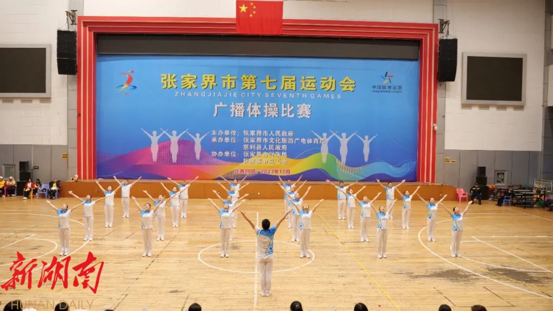夜幕降临,慈利一中运动馆内一支由25名桑植运动员组成的广播体操队,伴随着广播体操轻快愉悦的旋律,弯腰伸展、抬腿踏步,动作规范有力,整齐划一,在四分二十五秒的广播体操中展现出了桑植儿女朝气蓬勃的精神风貌,最终在24支参赛队伍中获得三等奖。