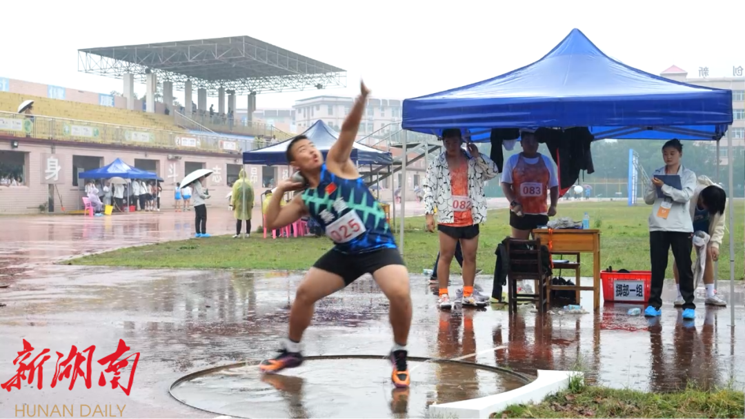 开幕仪式结束,桑植县运动员们立即投入到当天下午紧张激烈的比赛中,篮球、门球、跆拳道、田径赛场上随处可见桑植健儿的身影,大家在赛场上奋力拼搏、奋发进取,展现出桑植儿女不服输不认输的昂扬斗志。在U15男子铅球比赛场上,前五轮比赛一直排名第三的陈银君,在最后一轮投掷中以14.04米的好成绩拿下桑植县首块金牌,他告诉记者:“我六年级开始从篮球转到铅球,练习了三四年,今天的奖牌对于我当初的决定无疑是最好的肯定。”