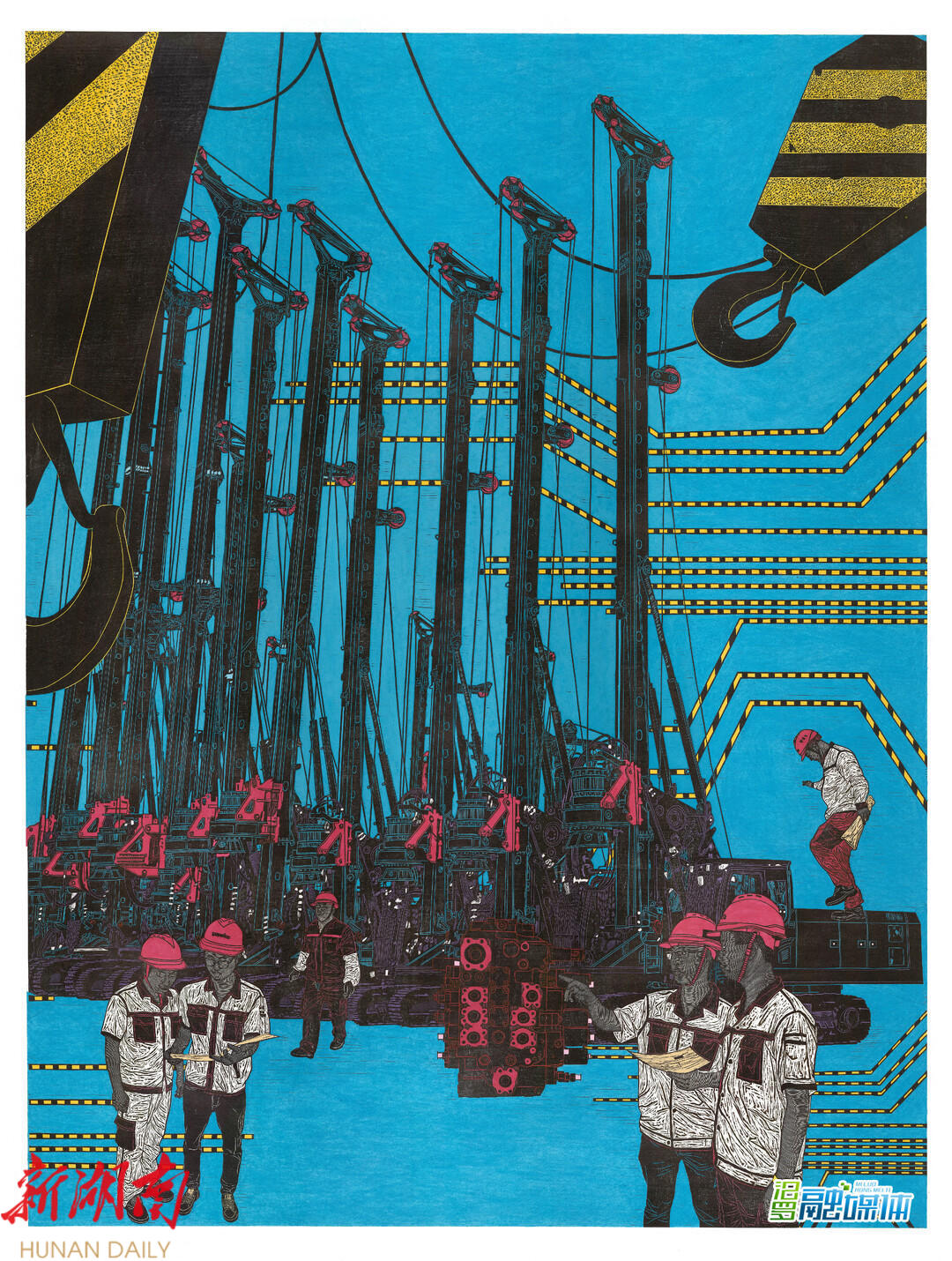 湖南科技大学齐白石艺术学院副院长文牧江认为,《上升的力量》运用平实无华的艺术语言和避重就轻的叙事形式,展现了新时代中国工业看似悄无声息,实则日新月异的上升力量。作品既有其在山河智能制造亲身体验的实感场景,又有工业题材版画的标志性语汇,感性与理想结合。