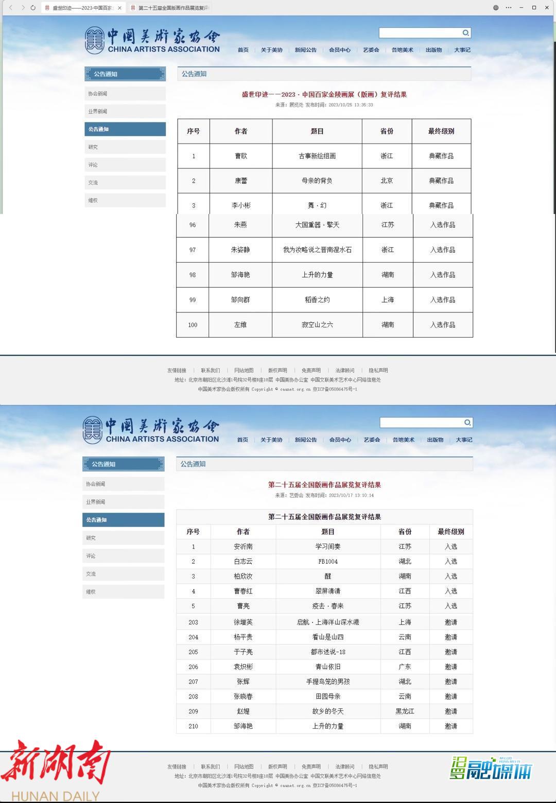 湖南日报·新湖南客户端10月26日讯(通讯员 胥扬)10月25日,记者获悉,中国美术家协会会员、汨罗版画家邹海艳作品《上升的力量》成功入选"盛世印迹——2023·中国百家金陵画展(版画)""第二十五届全国版画作品展览"同年度两次国展。