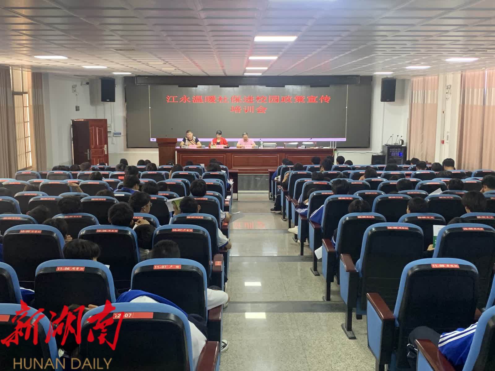 新江永客户端讯(通讯员 义平)10月25日,为进一步推进社会保障全覆盖,开展多渠道、分层次、全覆盖地传播社保政策,江永县人社局专门安排在江永县职业中专开展了一次大型“社保服务进校园”专场宣讲活动。